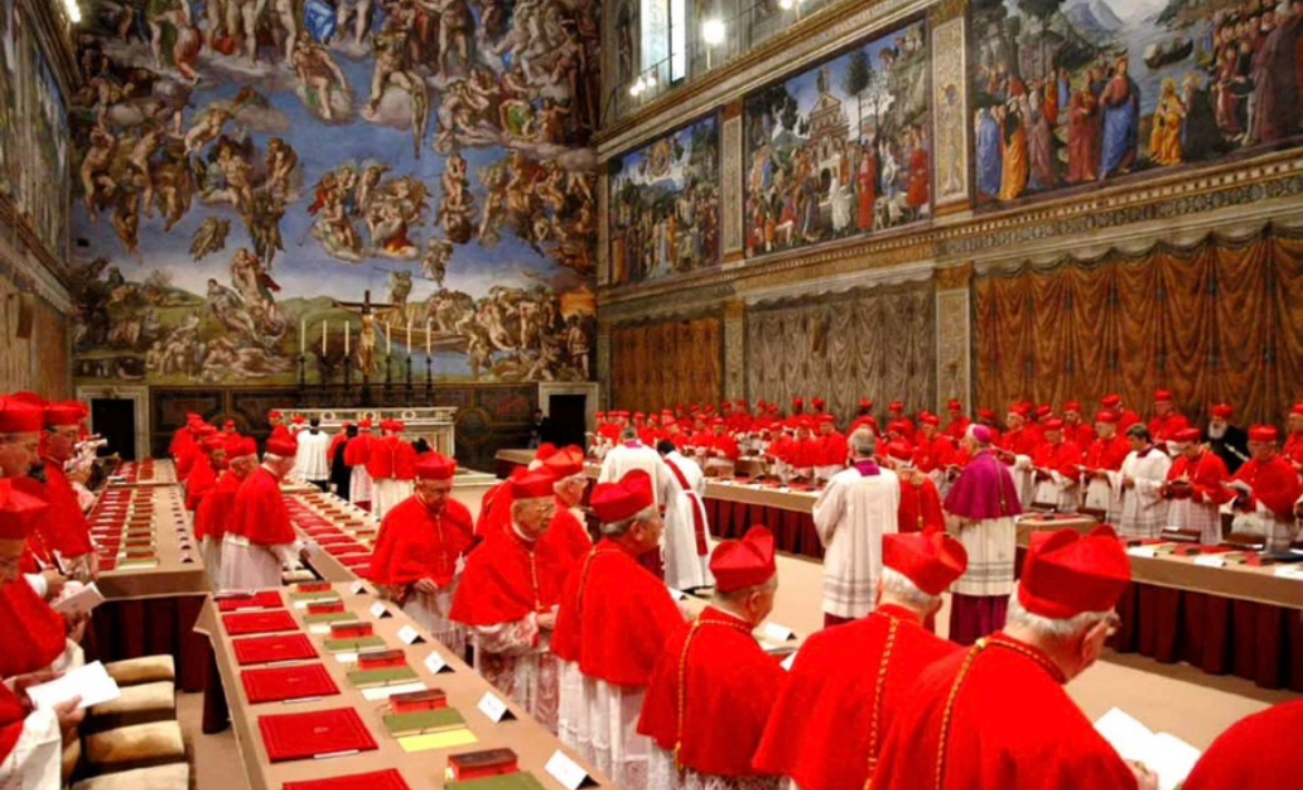 이는 새 교황을 선출하기 위해 전 세계 추기경들이 외부와 완전히 차단된 채 모이는 비밀 회의를 의미합니다.