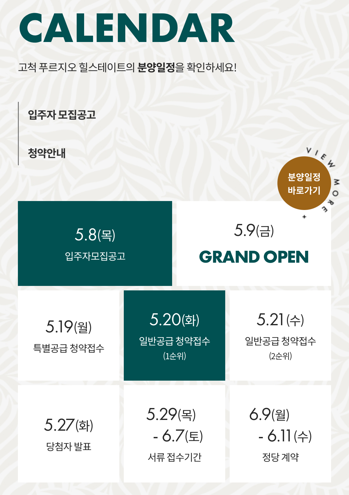 많은 분들이 궁금해하는 고척푸르지오힐스테이트 청약일정은 아래와 같습니다:
