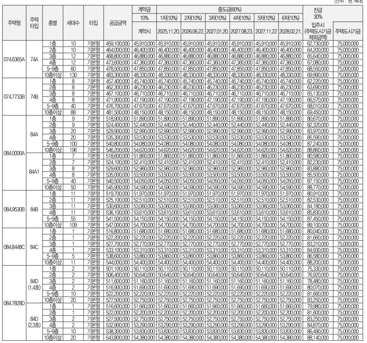 | 84D | 84.78㎡ | 74세대 | 약 5.43억 |