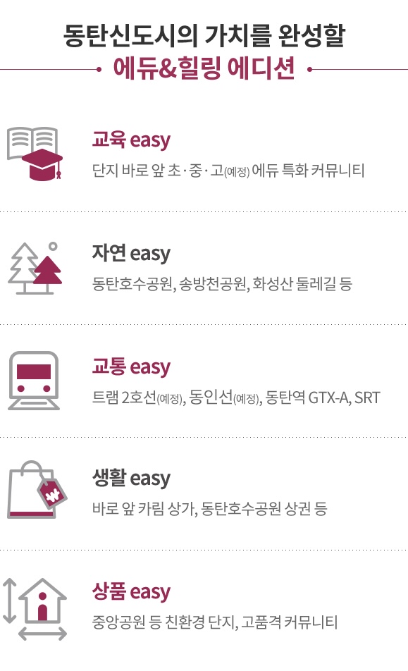 동탄2신도시 중심 입지에 들어서는 본 단지는 자연환경, 교육 인프라, 미래가치까지